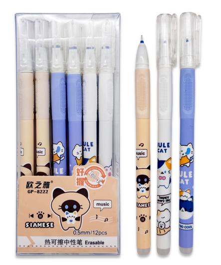 | Ручка "пишет-стирает" с ластиком КИТ 0 5мм Котики (грип-зона из резины) (цветной корпус с рисунком) синяя Ассорти GP-82  Надписи, сделанные такой ручкой, исчезают под воздействием температуры. Процедуру обессвечивания написанного текста можно проделать любым способом, нагревая лист бумаги выше +60С, например, зажигалкой, феном, любым горячим. Написанное можно восстановить. При температуре наже -18С происходит восстановление пигментного состава чернил до первоначальнгог уровня и написанное проявляется. Данный тип ручек максимально приближен к простому карандашу. Чернила ложатся на бумагу, не впитываясь в её структуру, благодаря чему надписи можно удалить с помощью обыкновенного ластика. Стержень ручки заправлен уникальными обесцвечивающимися термо-чернилами. Необходимо потереть надпись резинкой, расположенной на конце ручки и она исчезнет. Ручка не повреждает структуру бумаги, делая исправления незаметными. |
