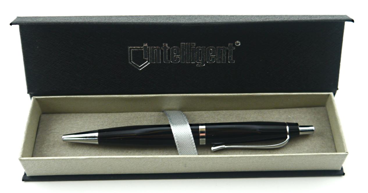 | | Ручка подарочная в футляре INTELLIGENT 0 7мм (чёрный корпус с золотистыми элементами) синяя DH-74  Ручка роллер в стильном темно-серебряном металлическом корпусе. Ручка поставляется в подарочном футляре. |