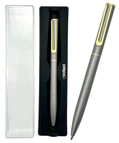 | | Ручка подарочная в футляре механическая (поворотная) INTELLIGENT 1 0мм кругл сереб /зол (матовый корпус) синяя (п/упаковка)  Ручка роллер в стильном металлическом корпусе. Ручка поставляется в подарочном футляре. |