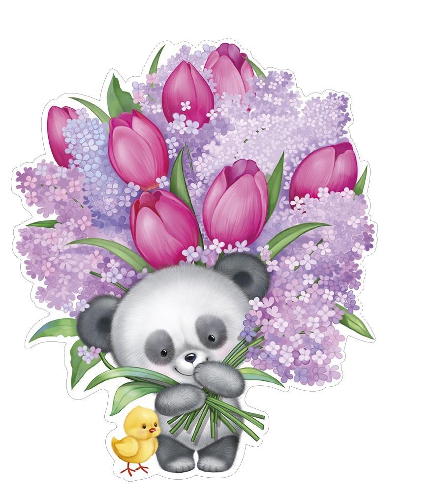 | | 8 МАРТА! Плакат А4 (ИМПЕРИЯ ПОЗДРАВЛЕНИЙ) 59 517 00 Панда и цыпленок с тюльпанами (вырубка) европодвес