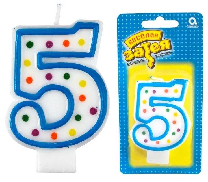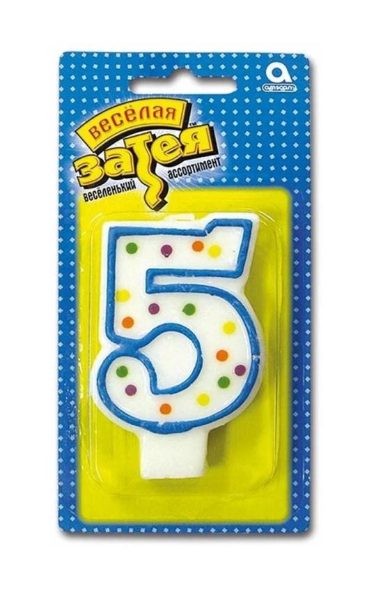 | Свеча для торта (Веселая Затея) Цифра "5" 7, 6см (картонная упаковка с европодвесом)  Декоративное украшение стола. Свеча в форме цифры. Яркий, модный дизайн - Горошек. РИСУНОК С ДВУХ СТОРОН свечи! Отличное решение для декорирования торта, десерта ко дню рождения или юбилею. Стеарин, оригинальный дизайн. Высота свечи-цифры 7,6см. |