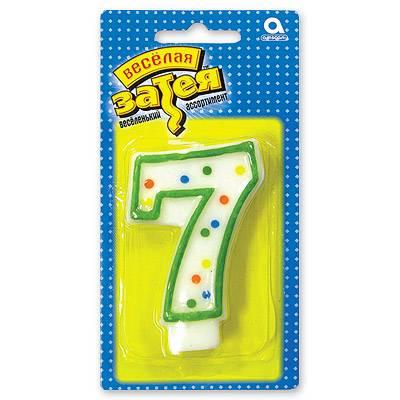 | Свеча для торта (Веселая Затея) Цифра "7" 7, 6см (картонная упаковка с европодвесом)  Декоративное украшение стола. Свеча в форме цифры. Яркий, модный дизайн - Горошек. РИСУНОК С ДВУХ СТОРОН свечи! Отличное решение для декорирования торта, десерта ко дню рождения или юбилею. Стеарин, оригинальный дизайн. Высота свечи-цифры 7,6см. |