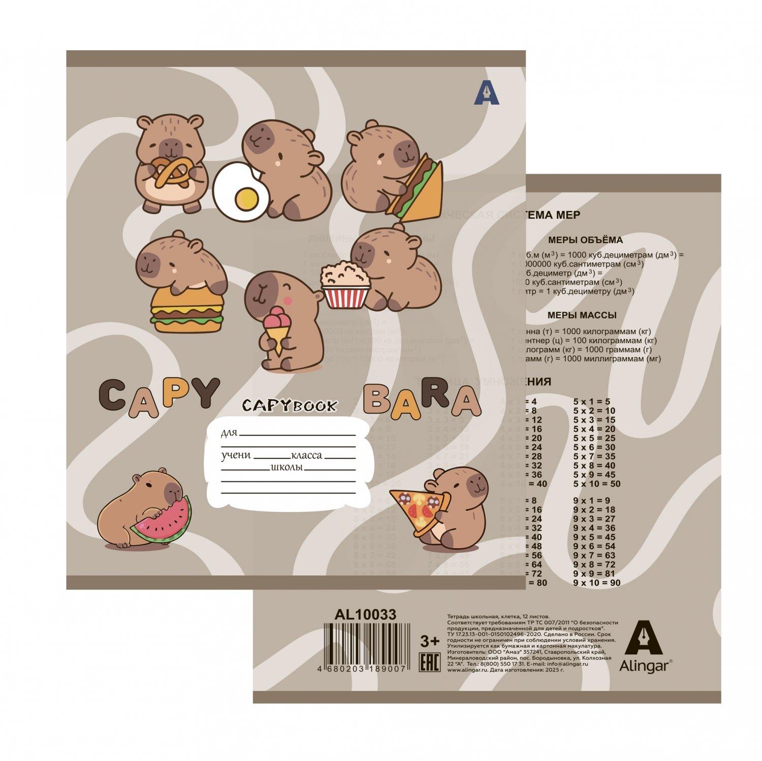 | | Тетрадь 12 листов А5 на скрепке (клетка) ALINGAR офсет (мелованная картонная обложка) Capybara copybook MIX Ассорти  Тетрадь 12л., клетка, Alingar, скрепка, блок офсет, 100% белизна, мелованный картон (стандарт), "Capybara copybook", 5 дизайнов в пленке т/у |