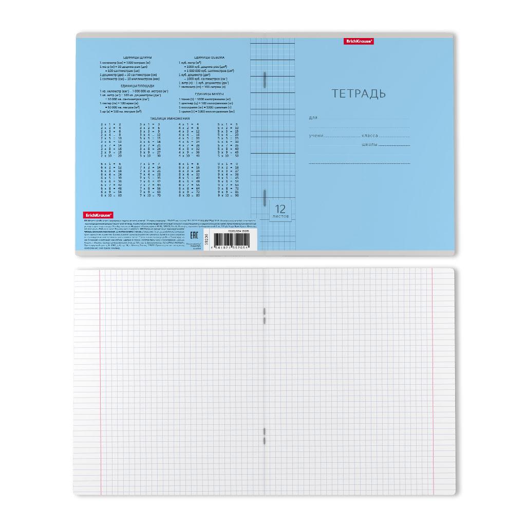 | Тетрадь 12 листов А5 на скрепке (клетка) ErichKrause офсет (картонная обложка) Классика Линовка голубая  Тетрадь школьная ученическая формата А5+ (170х203 мм). Обложка из высококачественного мелованного картона плотностью 180 г/м2. В блоке 12 листов в клетку с полями. Бумага офсетная плотностью 60 г/м2. Цвет линовки - синий. Скругленные уголки обложки и блока. Тип скрепления - скоба. Тетради одного цвета упакованы в термоусадочную пленку по 10 штук. |