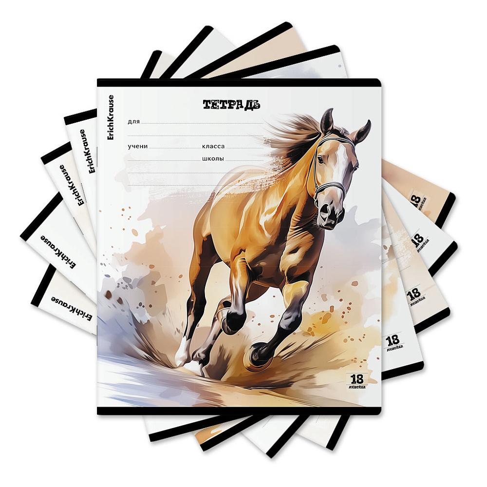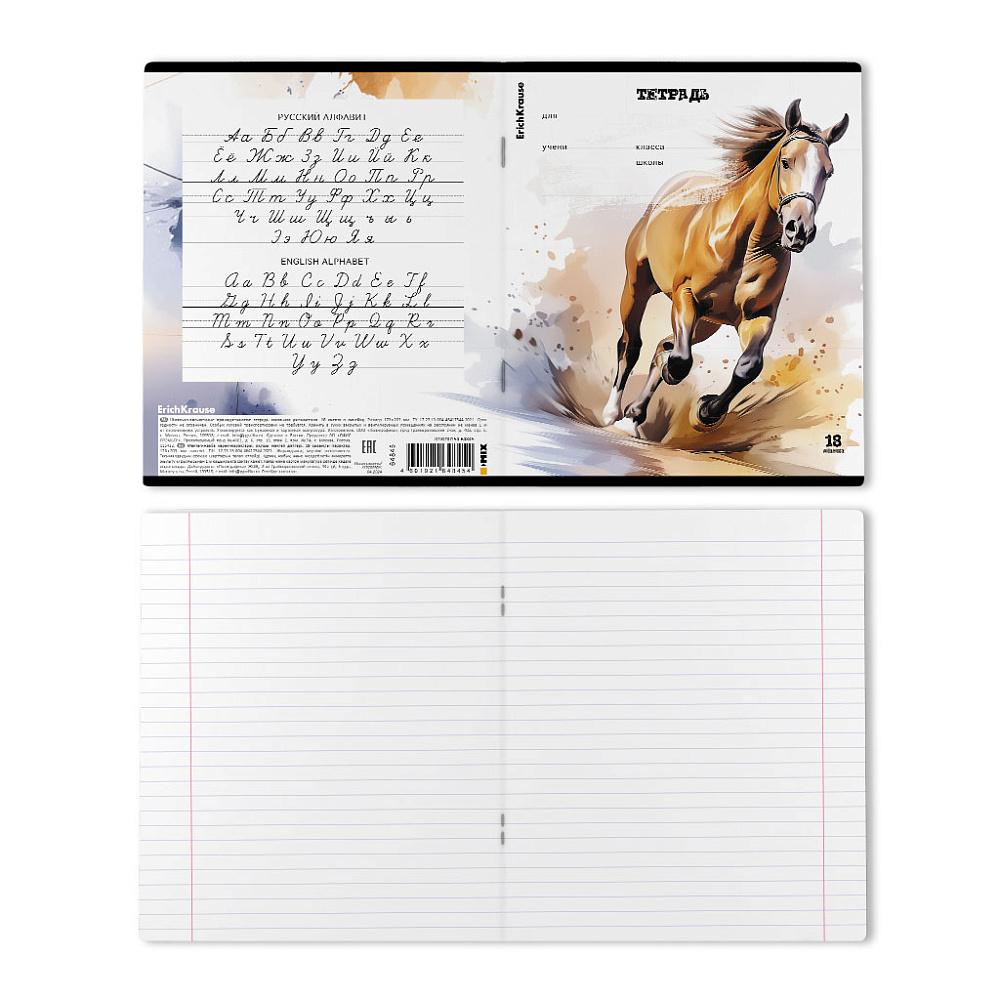 | Тетрадь 18 листов А5 на скрепке (линейка) ErichKrause офсет (картонная обложка) Wild Mane Mix-pack Ассорти  Тетрадь школьная ученическая формата А5+ (170х203 мм). Обложка из высококачественного мелованного картона плотностью 170 г/м2. В блоке 18 листов в линейку с полями. Бумага офсетная плотностью 60 г/м2. Цвет линовки - синий. Скругленные уголки обложки и блока. Тип скрепления - скоба. Тетради упакованы в термоусадочную пленку по 10 штук. |