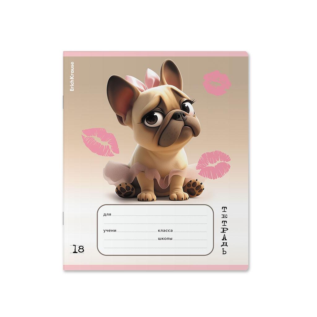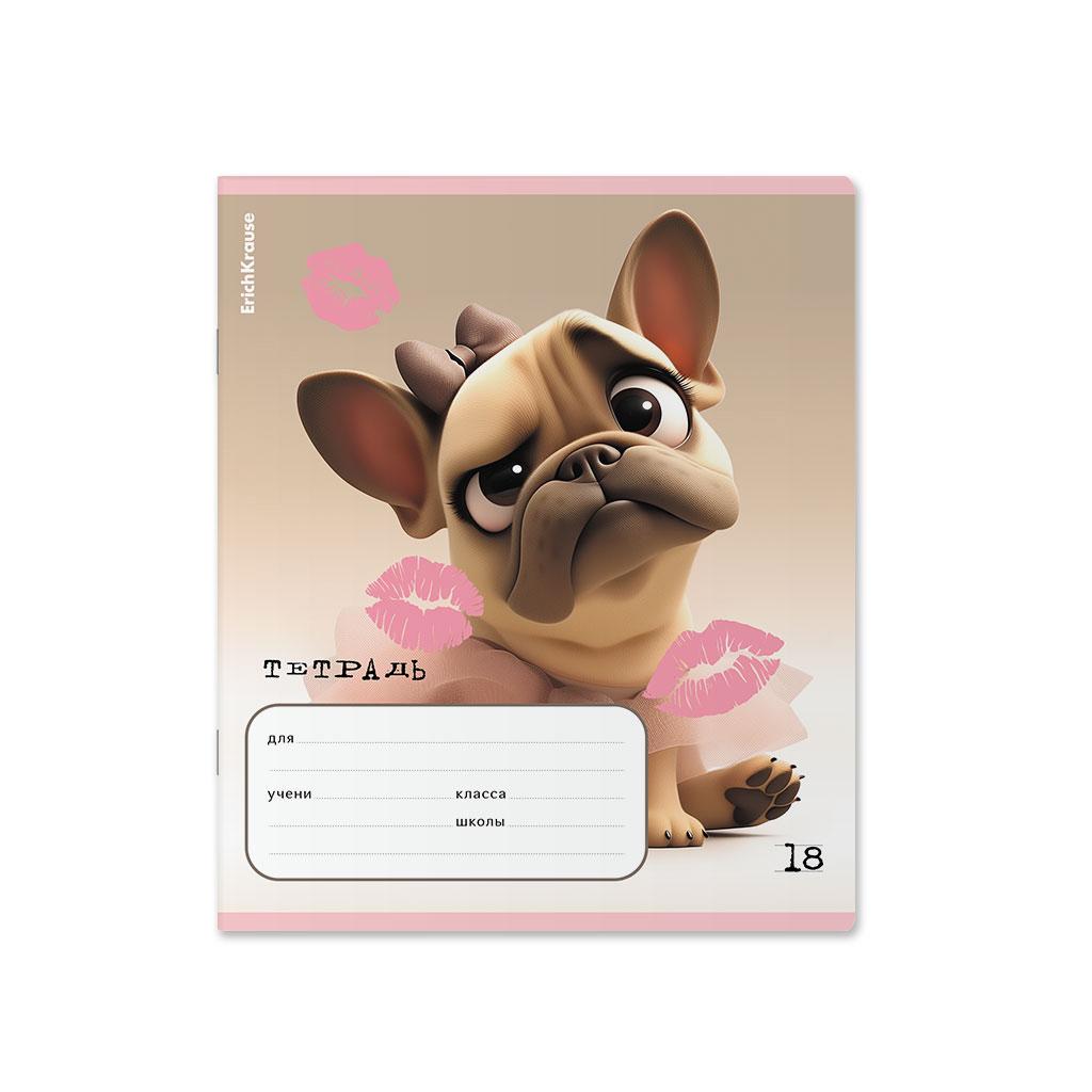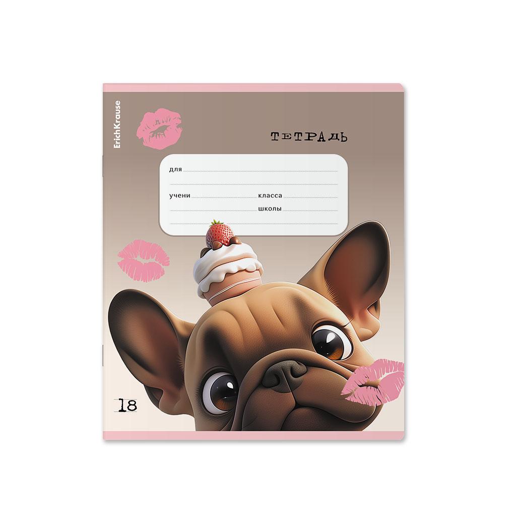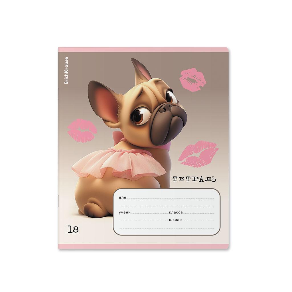 | | Тетрадь 18 листов А5 на скрепке (линейка) ErichKrause офсет (выборочный лак) Frenchie Mix-pack Ассорти  Тетрадь школьная ученическая формата А5+ (170х203 мм). Обложка из высококачественного мелованного картона плотностью 170 г/м2. Отделка обложки - выборочный УФ-лак. В блоке 18 листов в линейку с полями. Бумага офсетная плотностью 60 г/м2. Цвет линовки - синий. Скругленные уголки обложки и блока. Тип скрепления - скоба. Тетради разного дизайна упакованы в термоусадочную пленку по 10 штук.