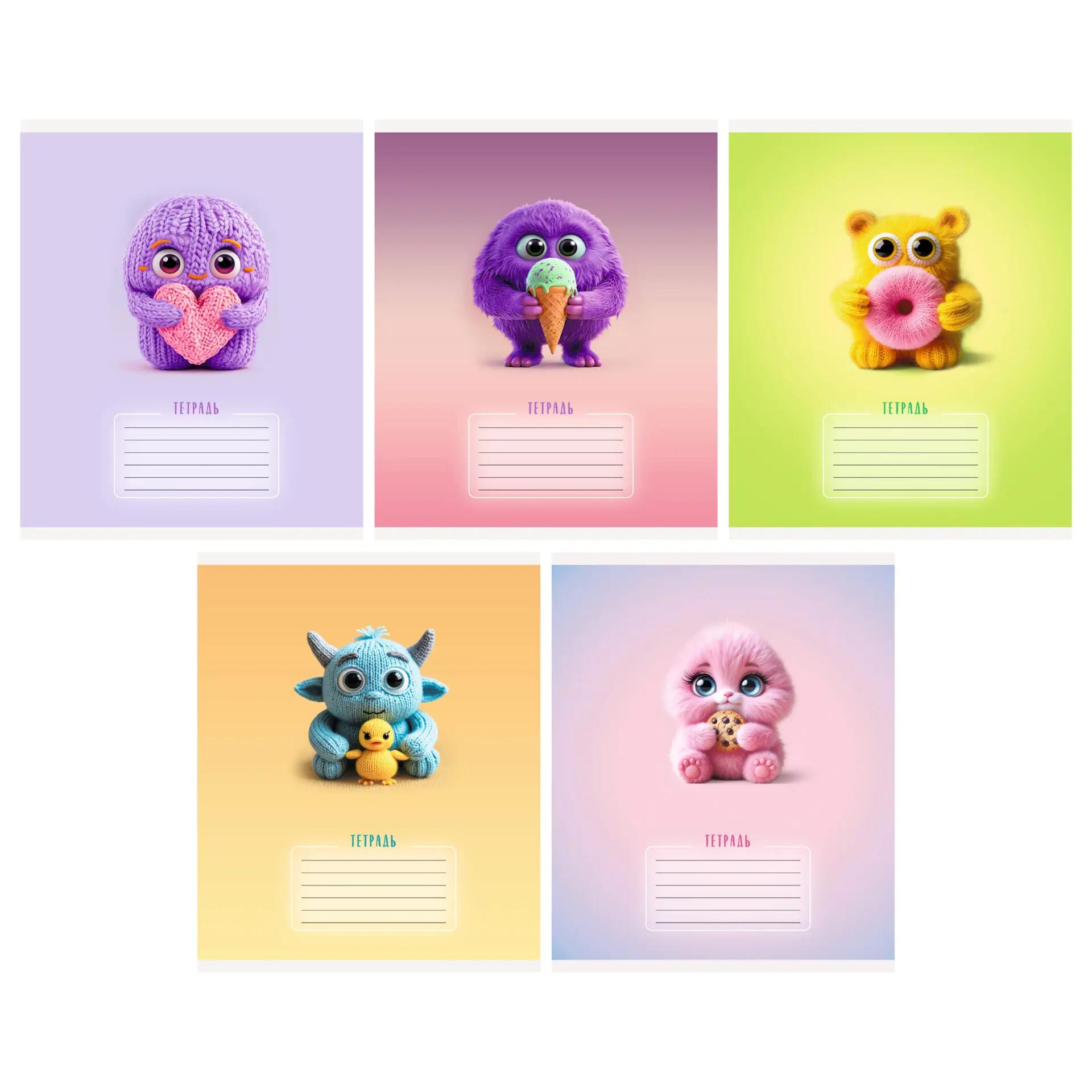 | Тетрадь 18 листов А5 на скрепке (линейка) (ЭКСМО) офсет (мелованная картонная обложка) Страшно милый АссортиМарка/Производитель: ЭКСМО  Современные тетради с градиентом — это яркий акцент в повседневной учёбе. Их многокрасочный современный дизайн, градиенты, световые блики и мягкое сияние, напоминающее эффект «glow», создающий ощущение чистоты и свежести, вдохновляют на творчество и делает даже обычные записи эстетичными. Формат A5 и 18 листов — оптимальный вариант для занятий в школе, рабочих заметок и личных идей. Обложка из мелованного картона надежно защищает, а внутренний блок в линию с полями помогает организовать мысли. Бумага плотностью 60 г/м? подходит для любых видов ручек и карандашей. |
