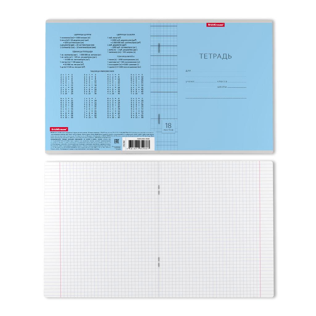 | | Тетрадь 18 листов А5 на скрепке (клетка) ErichKrause офсет (картонная обложка) Классика Линовка голубая  Тетрадь школьная ученическая формата А5+ (170х203 мм). Обложка из высококачественного мелованного картона плотностью 170 г/м2. В блоке 18 листов в клетку с полями. Бумага офсетная плотностью 60 г/м2. Цвет линовки - синий. Скругленные уголки обложки и блока. Тип скрепления - скоба. Тетради упакованы в термоусадочную пленку по 10 штук.