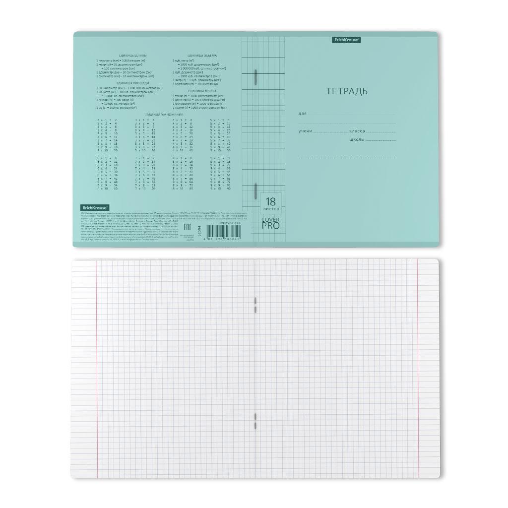 | Тетрадь 18 листов А5 на скрепке (клетка) ErichKrause офсет (пластиковая обложка) CoverPro Классика Pastel мятная  Тетрадь школьная ученическая формата А5+ (170x203 мм). Двойная обложка: внешняя выполнена из высококачественного износостойкого цветного пластика с фактурой «апельсиновая корка», внутренняя — из офсетной бумаги. В блоке 18 листов в клетку. Бумага офсетная плотностью 60 г/м2. Цвет линовки — синий. Скругленные уголки обложки и блока. Тип скрепления — скоба. Тетради упакованы в термоусадочную пленку по 10 штук. |
