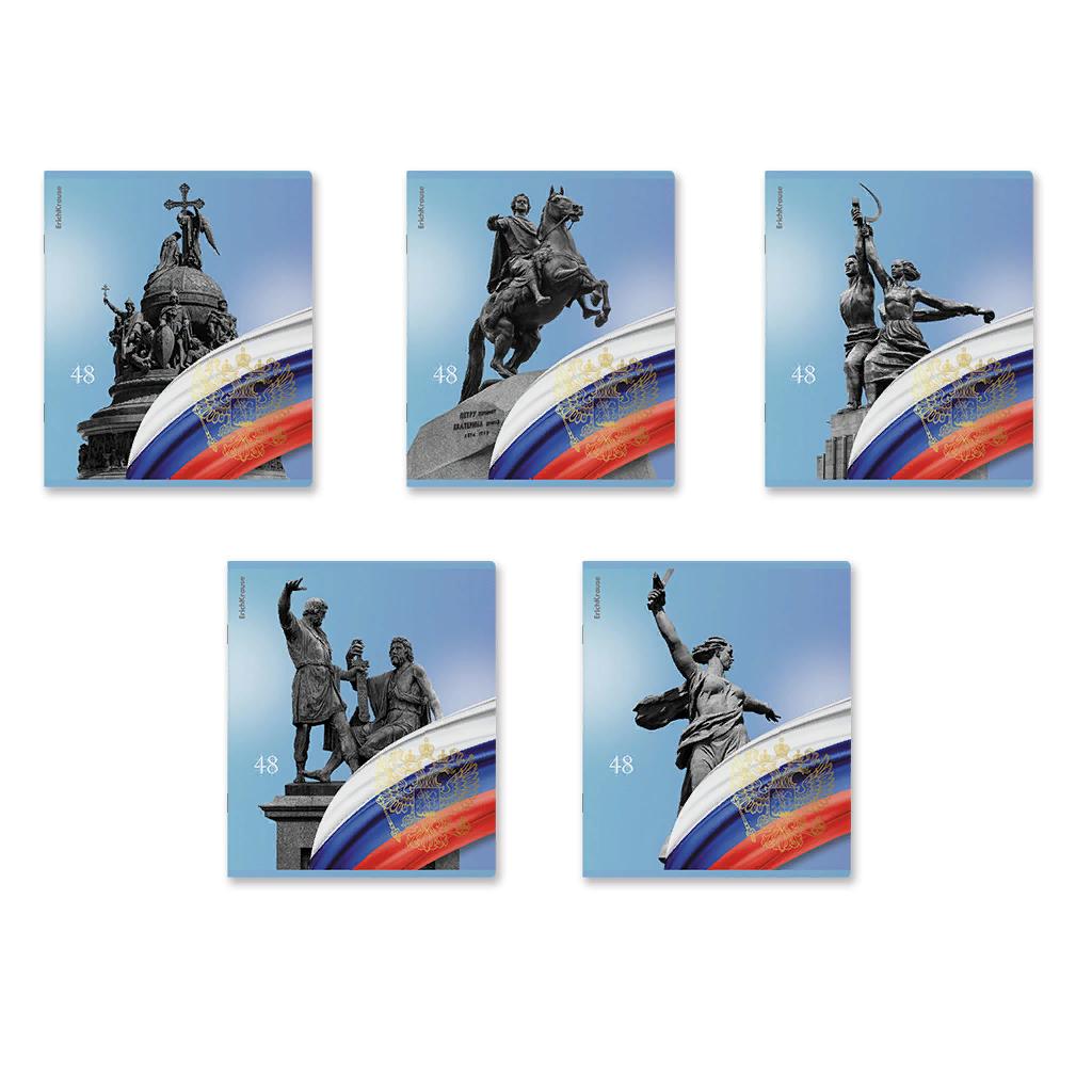 | Тетрадь общая А5 на скрепке 48 листов (клетка) ErichKrause офсет (матовая ламинация) (выборочный лак) (тиснение фольгой) Российский Герб Ассорти  Тетрадь общая формата А5+ (170х203 мм). Обложка из высококачественного мелованного картона плотностью 190 г/м2. Отделка - матовая ламинация, выборочный УФ-лак, тиснение фольгой. В блоке 48 листов в клетку с полями. Бумага офсетная плотностью 60 г/м2. Цвет линовки - синий. Скругленные уголки обложки и блока. Тип скрепления - скоба. Тетради разного дизайна упакованы в термоусадочную пленку по 5 штук. |