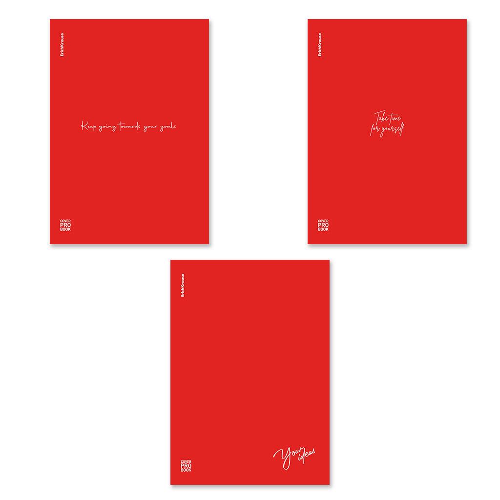 | | Тетрадь общая А4 48 листов на скрепке (клетка) ErichKrause офсет (пластиковая обложка) CoverPrоB Words крас Mix-pack Ассорти  Тетрадь общая ученическая формата А4 (210х297 мм). Обложка выполнена из высококачественного износостойкого матового пластика с фактурой «песок» и печатью белой краской. В блоке 48 листов в клетку. Бумага офсетная плотностью 60 г/м2. Цвет линовки — синий. Скругленные уголки обложки и блока. Тип скрепления — скоба. Тетради разного дизайна упакованы в термоусадочную пленку по 3 штуки. |