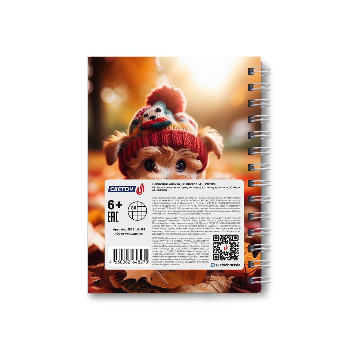 Книжка записная (на гребне) (твёрдая обложка) А6 80 листов SVETOCH (клетка) (глянцевая ламинация) Осен мод Mix Ассорти  Удобная записная книжка 80 листов, А6 формата - подойдёт для ваших записей, заметок и зарисовок. Внутренний блок изготовлен из качественной офсетной бумаги плотностью 65 г/кв. м, 100% белизны. Обложка - твердый картон. Дизайн обложки дополнен спецэффектом в виде глянцевой ламинации. Линовка - клетка. Вид скрепления - гребень. Скрепление гребень позволяет раскрывать записную книжку на 360 градусов. Без возможности выбора дизайна. |