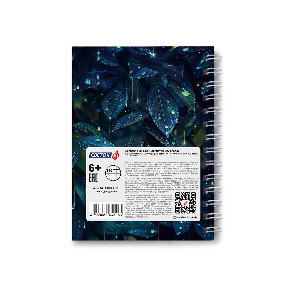 | Книжка записная (на гребне) (твёрдая обложка) А6 120 листов SVETOCH (клетка) (глянцевая ламинация) Мел дожд Mix Ассорти  Удобная записная книжка 120 листов, А6 формата - подойдёт для ваших записей, заметок и зарисовок. Внутренний блок изготовлен из качественной офсетной бумаги плотностью 65 г/кв. м, 100% белизны. Обложка - твердый картон. Дизайн обложки дополнен спецэффектом в виде глянцевой ламинации. Линовка - клетка. Вид скрепления - гребень. Скрепление гребень позволяет раскрывать записную книжку на 360 градусов. Без возможности выбора дизайна. |