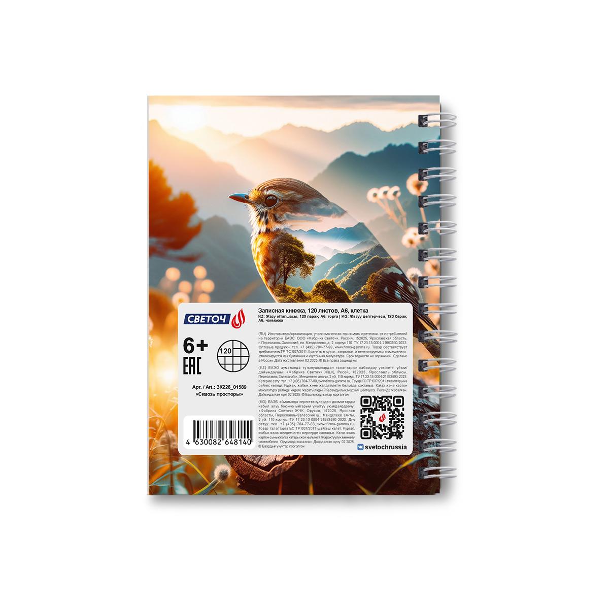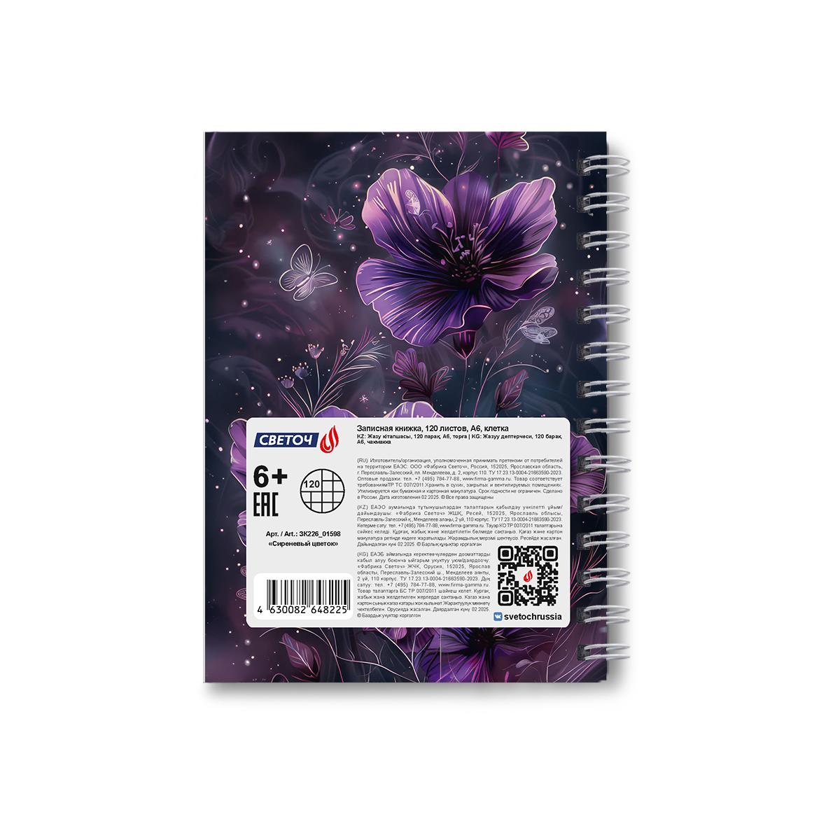 | Книжка записная (на гребне) (твёрдая обложка) А6 120 листов SVETOCH (клетка) (глянцевая ламинация) Сквозь прост Ассорти  Удобная записная книжка 120 листов, А6 формата - подойдёт для ваших записей, заметок и зарисовок. Внутренний блок изготовлен из качественной офсетной бумаги плотностью 65 г/кв. м, 100% белизны. Обложка - твердый картон. Дизайн обложки дополнен спецэффектом в виде глянцевой ламинации. Линовка - клетка. Вид скрепления - гребень. Скрепление гребень позволяет раскрывать записную книжку на 360 градусов. Без возможности выбора дизайна. |