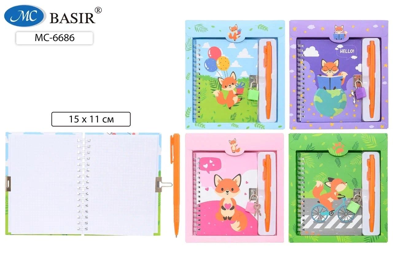 | Блокнот детский с замком BASIR А6 48 листов (на гребне) (твёрдая обложка) (клетка) Лиса +руч (подарочная упаковка) АссортиМарка/Производитель: BASIR   Блокнот детский+замочек+авторучка: "ЛИСА"; в подарочной упаковке /19,5*17,5 см/; яркая, цветная обложка 7БЦ /ассорти/, на евроспирали, блок-клетка 48 л.; 15*11 см. Блокнот - это универсальное место для записей. Вы можете использовать блокнот в следующих целях: - использование для записи нужных заметок, анализ полученных данных, - ведение дневника и личных записей, - запись деловых контактов и телефонных номеров, - планировщик, ежедневник, - для записи паролей, - рисование скетчей, - хранилище идей, - антистресс с раскрасками, - запись кулинарных рецептов, - списки покупок, - детский блокнот для наклеек, - каллиграфия, - решение текущих задач, например, запись показаний своих тренировок, - свои любимые цитаты и высказывания. Носите блокнот с собой, фиксируйте идеи, делайте зарисовки, описывайте свои мысли, события дня, планы, мечтания и ощущения, состояния и открытия. Блокнот с замком защищает ваши записи от любопытных глаз. Подобрать шифр очень сложно, потому за сохранность тайн можно не беспокоиться.  |