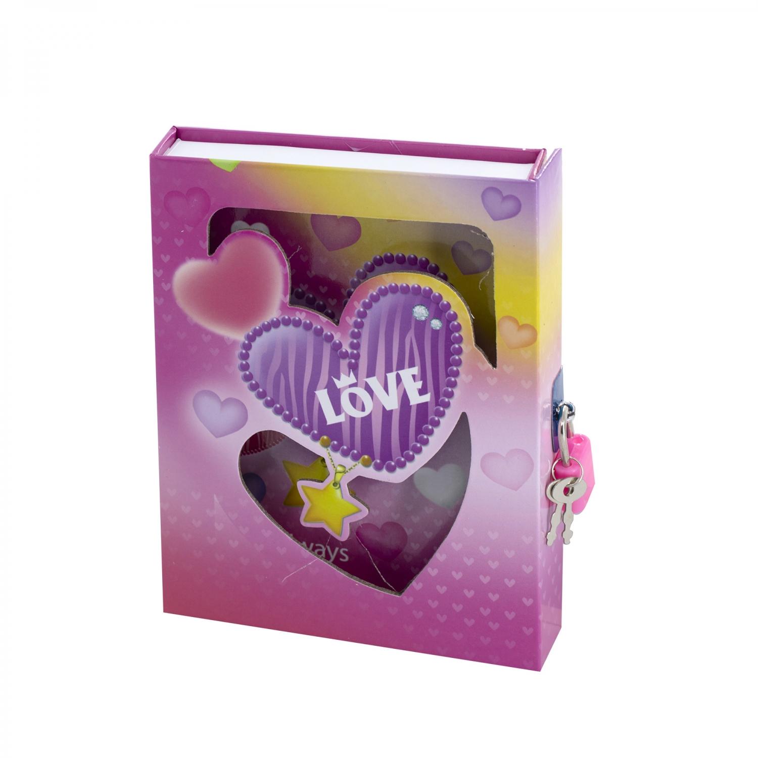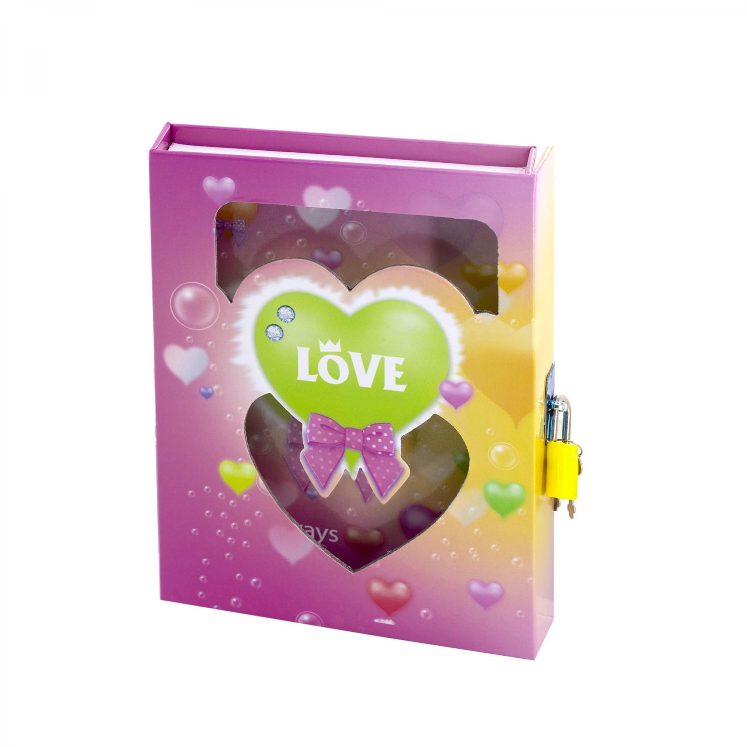 | Блокнот детский с замком ALINGAR А6 45 листов (твёрдая обложка) (линейка) Love С брелоком (подарочная упаковка) (п/упаковка)  Подарочный блокнот в футляре, 12,5 см * 16,0 см, 7БЦ, Alingar, ламинация, замочек, линия, 45 л., "Love. С брелоком". |