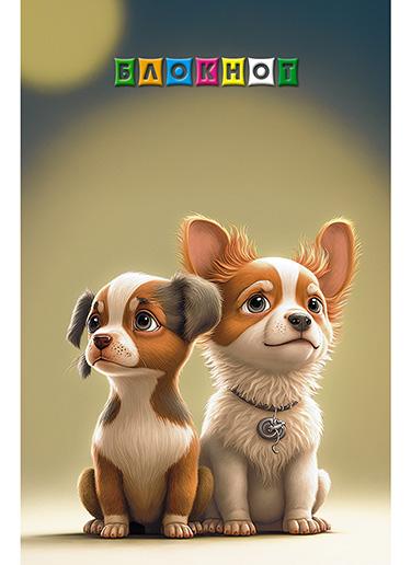 | Блокнот А6 16 листов (АППЛИКА) (картонная обложка) (клетка) Два щенка  Блокнот на скрепке, 16 листов, формат А6, клетка, плотность 60 гр/м2. Внутренний блок - высококачественная белая офсетная бумага. Обложка - мелованный картон, полноцветная печать. Крепление - скоба. |