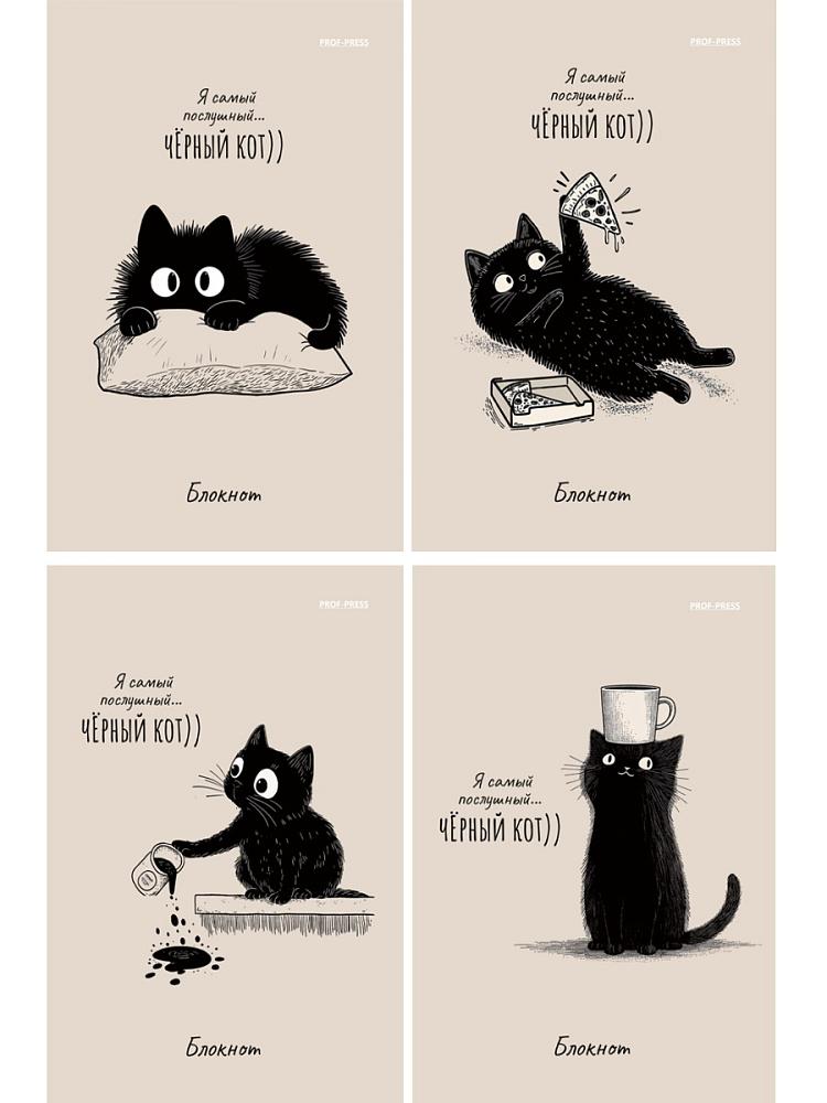 | Блокнот А6 24 листа ИДП (мелованная картонная обложка) (клетка) Послуш черный кот-1 Ассорти  Чтобы все запомнить, лучше записать! И здесь блокнот является незаменимым помощником. Блокнот выполнен в формате А6, 24 листа, на скрепке, цветная мелованная обложка. Внутренний блок: офсет. Блокноты от компании "Проф-Пресс" будут всегда под рукой и создадут праздничное настроение! |