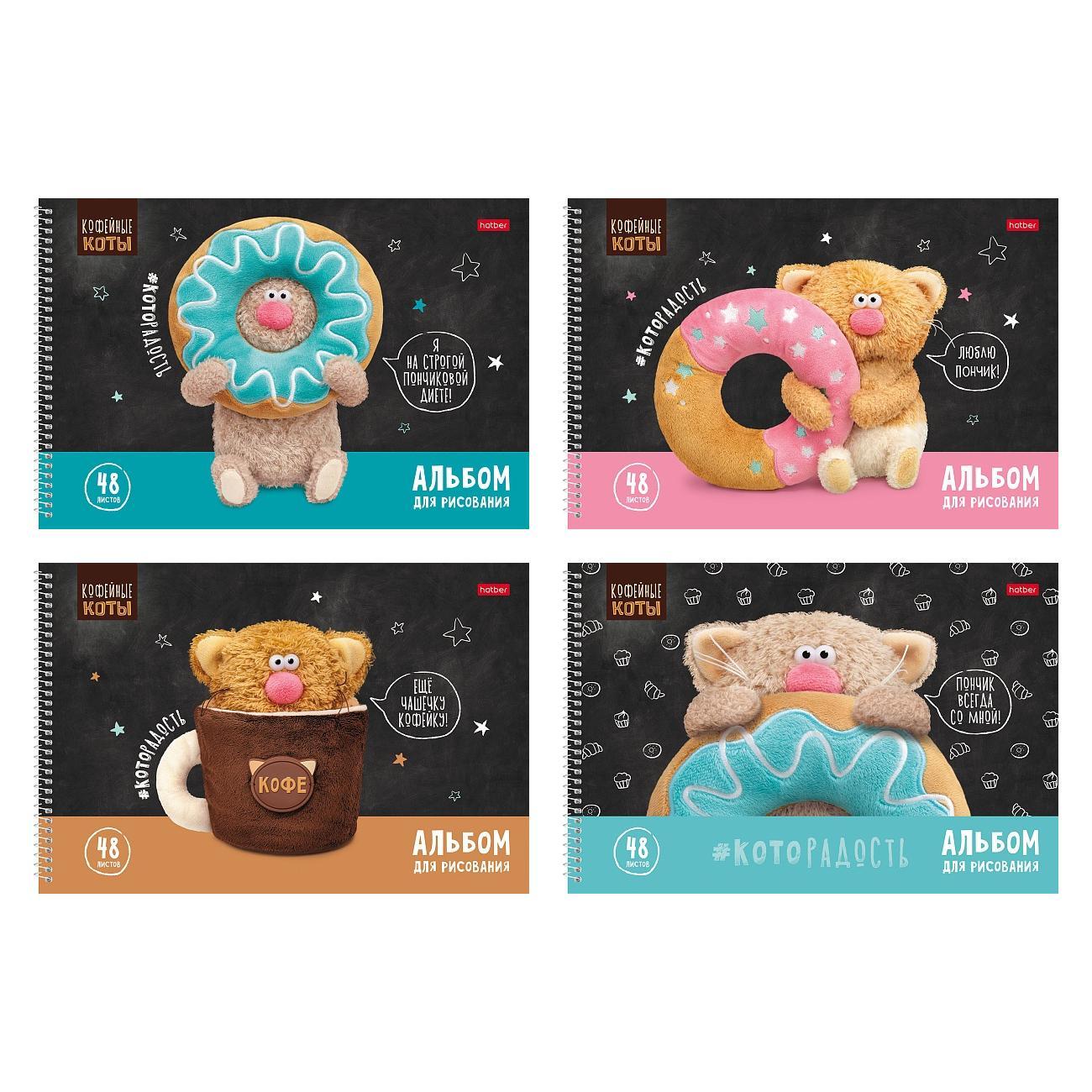 | Альбом для рисования А4 48 листов (ХАТБЕР) (на гребне) (картонная обложка) (перфорация) Кофейные коты (плотность бумаги 100 г/кв м) Ассорти  Альбом А4 формата, на спирали. Внутренний блок - 48 листов, офсетная бумага 100 гр. Микроперфорация позволит легко и аккуратно отрывать листы от альбома. Обложка изготовлена из высококачественного мелованного картона. Альбом для рисования ТМ Hatber российского производства отпечатан на современном высокотехнологичном оборудовании и соответствует стандартам качества. Подходит для рисования карандашами, фломастерами, красками. Рисование в альбомах Hatber - это увлекательный и творческий досуг для всех. |