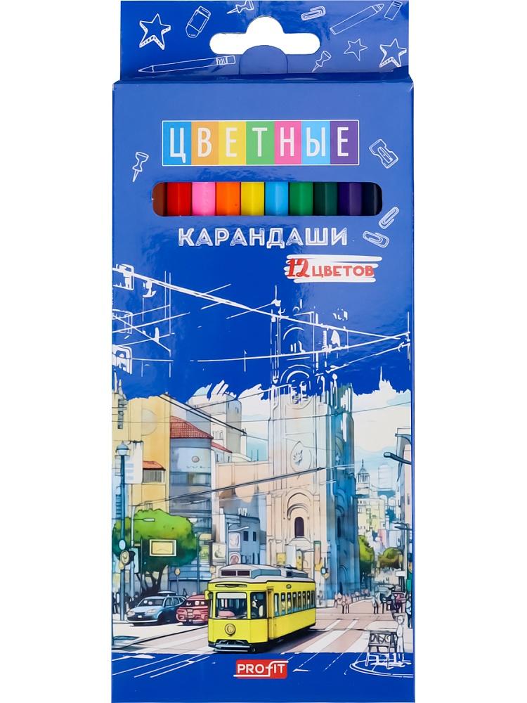 | Карандаши 12 цветов (шестигранный корпус) ИДП Городской трамвай (заточенные) (картонная упаковка с европодвесом)  Цветные карандаши — это друзья детства каждого ребенка! Они не только помогают развитию мелкой моторики, но и способствуют выражению своих эмоций через рисунок! Яркие насыщенные цвета и качество — всё, что нужно для красивого рисунка и хорошего настроения! Цветные карандаши от компании "Проф-Пресс" представлены в наборе из 12 цветов и изготовлены в деревянном шестигранном корпусе. Продаются в картонной коробке с европодвесом. |