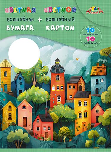 | Набор - Картон цветной волшебный (10)+ цветная бумага (10) А4 (АППЛИКА) в папке Цветн полоски  Набор Волшебных Цветной бумаги 10 листов и Цветного картона 10 листов. Формат А4. Внутренний блок цветного картона изготовлен из 8 листов немелованного картона, плотность 200 гр/м2 и 2 листов мелованного картон плотностью 230 гр/м2, окрашенных золотой и серебряной краской. Внутренний блок цветной бумаги изготовлен из 8 листов офсетной бумаги №2 и 2 листов мелованной бумаги, окрашенных золотой и серебряной краской. В наборе цвета картона: красный, синий, зеленый, желтый, оранжевый, фиолетовый, черный, белый, золотой серебряный; бумага: синий, желтый, красный, черный, розовый, оранжевый, коричневый, зеленый, золотой, серебряный. Упаковка - папка выполнена из мелованного картона. |