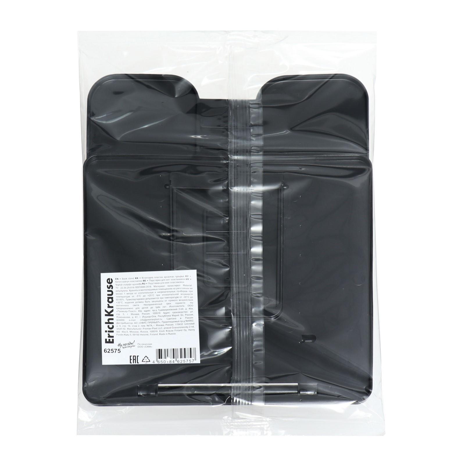 | Подставка для учебников и книг пластиковая ErichKrause Base Classic черная (п/упаковка с европодвесом)  Пластиковая складная подставка с фиксатором для книг. Позволяет расположить книгу под удобным углом наклона (7 углов), тем самым положительно влияя на осанку и зрение ребенка. Держатель, расположенный в нижней части, надежно фиксирует страницы. Ширина подставки — 235мм, высота спинки — 190мм. |