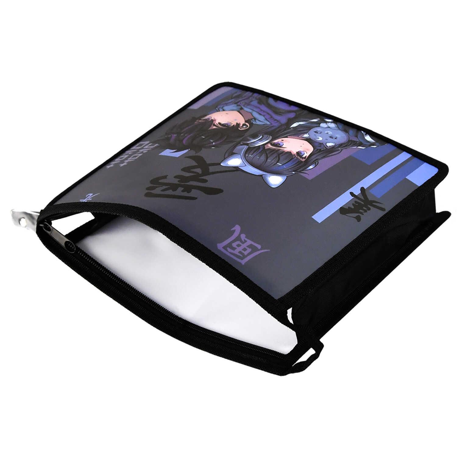 | Папка для тетрадей пластиковая А5 (ФЕНИКС) с 1 отделением (молния сверху) Кибер Аниме  Папка для школьных тетрадей. КИБЕР АНИМЕ. Формат А5. Размер: 23.3x20х6.5 см. Материал: полипропилен. Толщина: 500 мкм. Количество отделений - 1 отделение (-я). Тип застёжки: молния. Отделка: УФ-печать. Цвет: фиолетовый, чёрный. Особенности: дно с расширением |