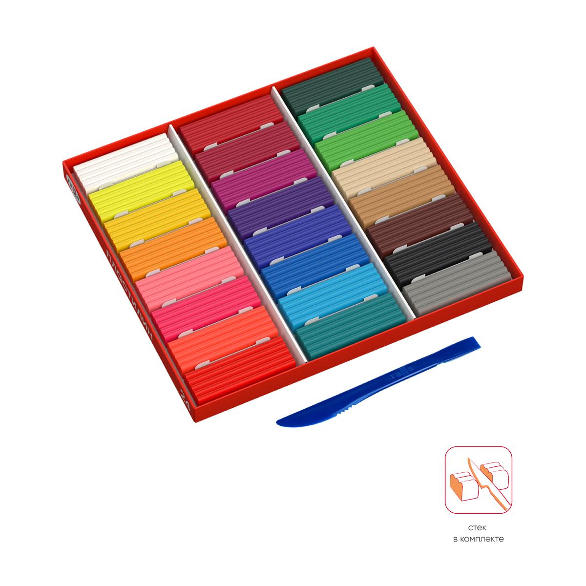 | | Пластилин 24 цвета 480гр ЛУЧ Классика со стеком (картонная упаковка)  Пластилин «Классика» предназначен для лепки и моделирования в детском творчестве. Яркий и пластичный пластилин изготовлен из высококачественных компонентов. В меру мягкий и в меру твёрдый. Является отличным материалом для обучения лепке Пластилин рекомендуют не только педагоги и родители, но и профессиональные мультипликаторы Не имеет выраженного неприятного запаха Имеет яркие, не приглушённые чистые цвета, которые отлично смешивающиеся друг с другом Отлично держит форму, не рвётся и не крошится при перегибании Не липнет к рукам Идеально вытягивается до тончайшей колбаски Можно делать очень маленькие детали, которые не деформируются при соединении Безопасен для детей (безопасность продукции гарантируют регулярные проверки на соответствие требованиям по безопасности Российского законодательства, требованиям Таможенного союза и требованиям по безопасности гармонизированных стандартов ЕС) |