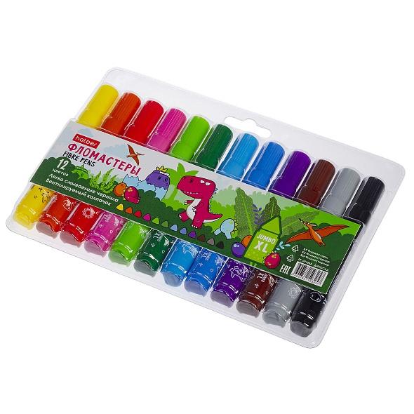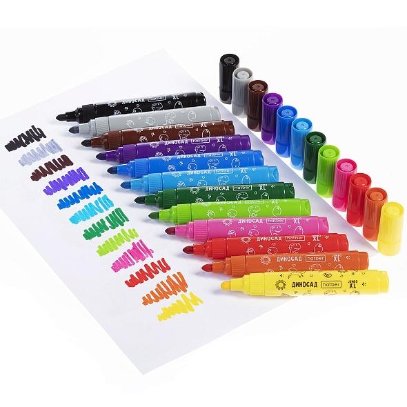 | | Фломастеры утолщённые Набор 12 цветов (ХАТБЕР) Jumbo-XL Диносад смываемые (вентилируемый колпачок) (п/упаковка с европодвесом)  Фломастеры Hatber JUMBO-XL ДИНОСАД 12 цветов с одним из самых толстых корпусов в своём классе - диаметром 19мм.Утолщённая форма корпуса, позволяет ребёнку удобно держать фломастер в руке. Корпус из полипропилена устойчив к разлому, - безопасен при попытке сломать. Чернила фломастеры изготовлены на водной основе, не имеет запаха, безопасны, легко смываются с рук и одежды с помощью воды и мыла. Штрихи и линии не проступают на обратную сторону листа. Толстый наконечник, диаметром 6мм, выдерживает сильный нажим и не проваливается внутрь корпуса.Колпачок имеет специальные прорези для вентиляции, которые способствуют прохождению воздуха при случайном попадании в дыхательные пути ребёнка. При этом колпачок плотно закрывается, обеспечивая долгий срок службы фломастера. |
