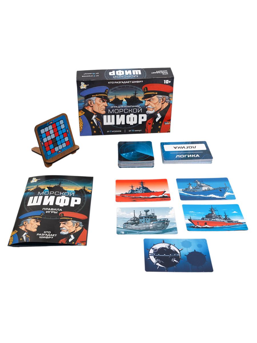 | | Игра настольная ДК "Морской шифр" (картонная упаковка)   Настольная игра для большой компании «Морской шифр» - настольная игра, в которой участники становятся адмиралами и моряками. Адмиралы дают подсказки, состоящие из одного слова, связанного с несколькими карточками на игровом поле. Моряки должны расшифровать послание, чтобы определить положение чужих кораблей и атаковать их. Задача каждой команды - первыми уничтожить вражеский флот, избегая подрыва на минах и стремясь сохранить больше своих кораблей. Как играть? Разделите игроков на 2 команды и выберите адмиралов. Тщательно перемешайте карточки с морским шифром. Разложите 36 из них на столе сеткой 6х6 шт. - это игровое поле. Остальные шифрограммы отложите для следующих партий. На стороне адмиралов расположите подставку, карты "Минное поле" и "Атакующий корабль", а также карты гражданских судов. Стопка красных кораблей должна находиться перед адмиралом Синего флота; а стопка синих кораблей - перед адмиралом Красного флота. В самом начале игры адмиралы наугад берут карточку "Радар" и устанавливают ее лицом к себе на подставку, которая находится между ними. Радар показывает расположение всех кораблей и минного поля в данной партии. Цвет лампочек по краям радара указывает, чей адмирал дает первым подсказку. Чтобы выиграть, нужно утопить весь флот противника. Команда, начинающая игру, получает карту "Атакующий корабль" (используется цвет противника) и должна подбить 11 чужих кораблей, разгадав шифры. Второй команде для победы достаточно понять 10 шифров.  |