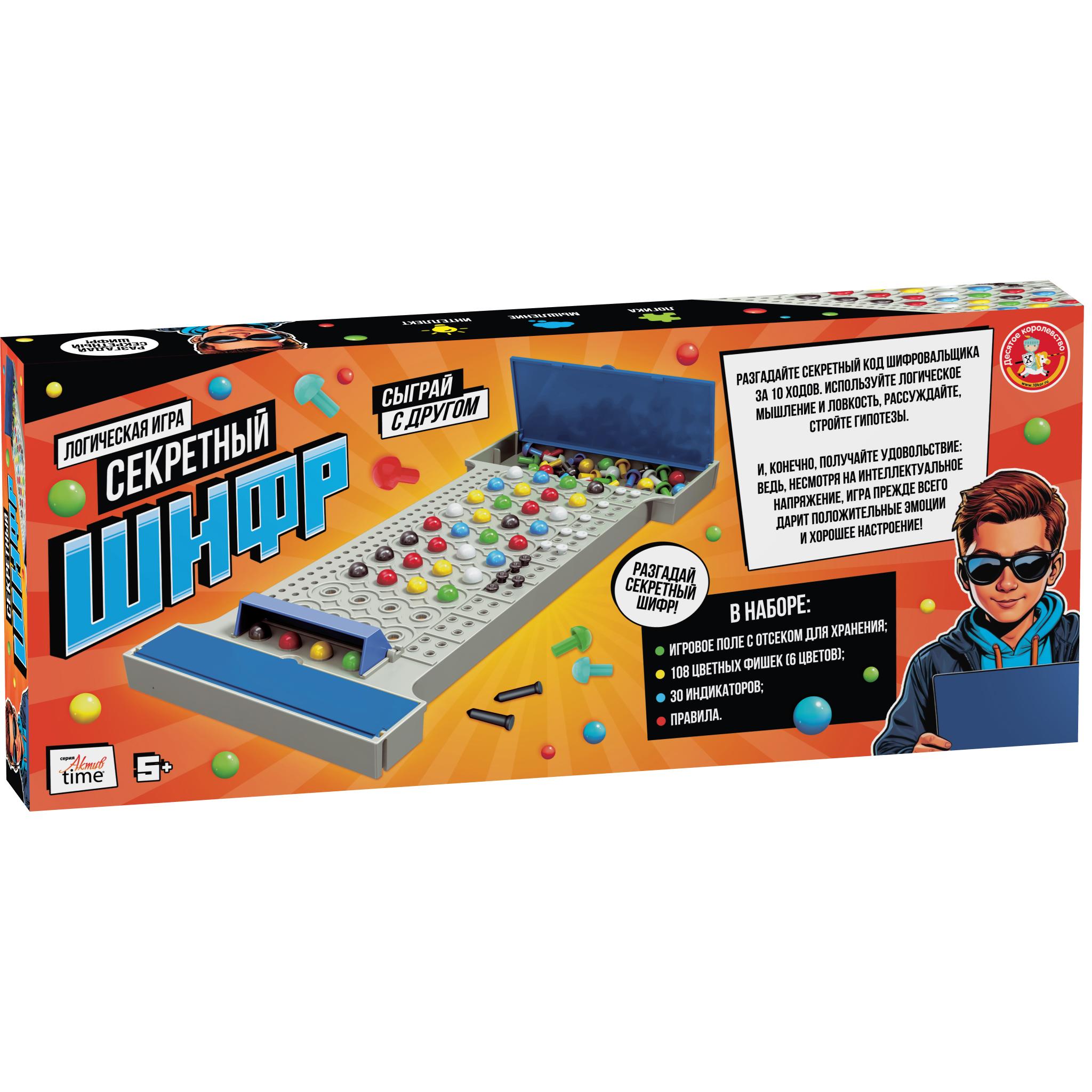 | Игра настольная ДК "Секретный шифр" (картонная упаковка)  Настольная игра «Секретный шифр мини» - настольная игра, в которой участники становятся шифровальщиками и дешифровальщиками. Шифровальщик составляет секретный код, оставляя от одного до трех пустых мест в последовательности фишек. Когда код готов Дешифровальщик начинает выставлять фишки на игровое поле, пытаясь воспроизвести точную последовательность и разгадать шифр. Все его комбинации должны оставаться на месте на протяжении раунда. Состав игры: - игровое поле 8см х 16,5 см. - 60 цветных фишек. - 30 индикаторов. - правила игры. Для детей старше 5 лет и взрослых. |