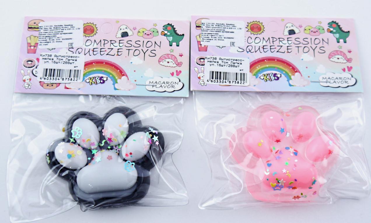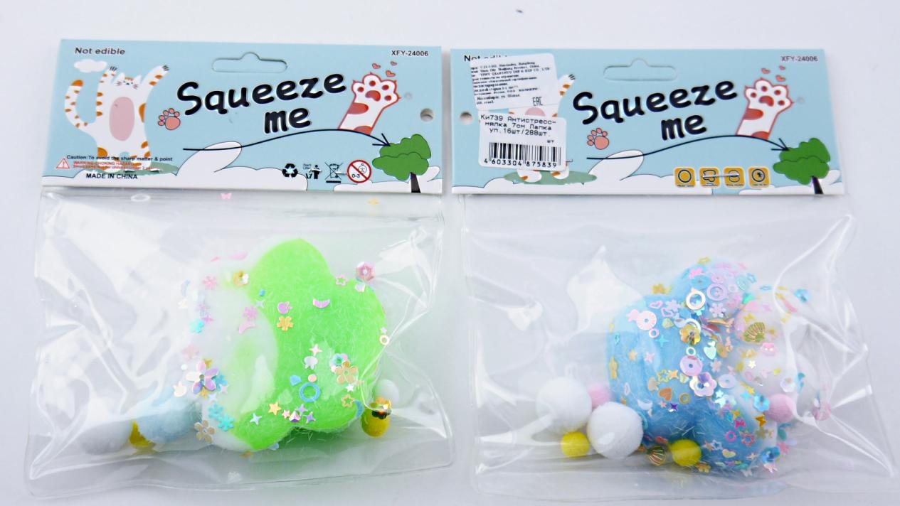 | Игрушка Антистресс Мялка ГРУП Лапка 6см (с блестками) шарики (п/упаковка с европодвесом) Ассорти  Игрушка-антистресс, приятная на ощупь, принимающая свою прежнюю форму после сжатия. Такая игра развивает воображение, мелкую моторику рук, координацию, ловкость, помогает справиться с волнением и просто поднимают настроение. Антистресс-мялка приятна с точки зрения тактильных ощущений. Ее можно сжимать, бросать, придумывать различные сюжеты и коллекционировать. Она послужит отличным инструментом снятия стресса как для детей, так и для взрослых. |