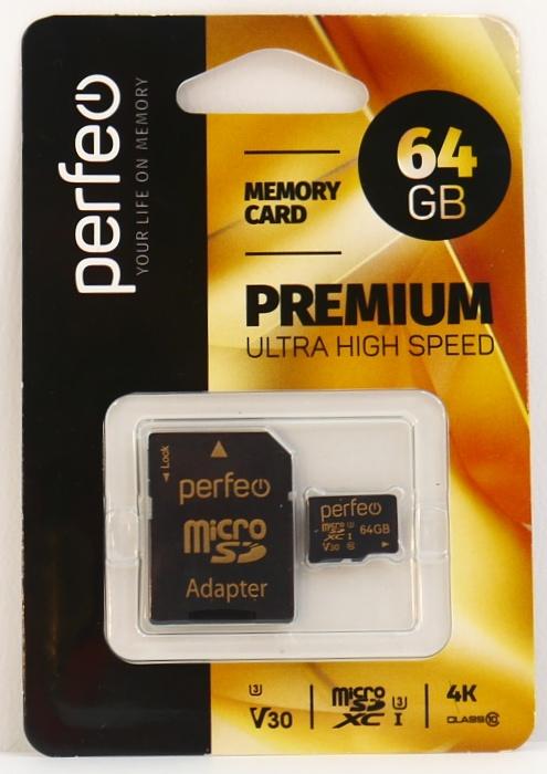 Флэш-драйв microSDXC на64GB PERFEO Class10 адап (черный корпус) UHS-1  Карта памяти - компактное электронное запоминающее устройство, используемое для хранения цифровой информации, хранения фотографий, видеоматериалов, документов, музыки. |