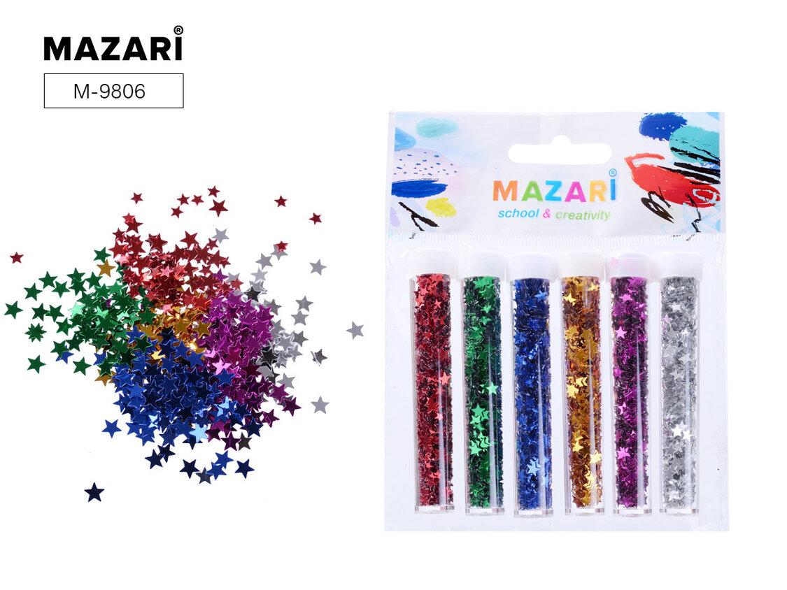 Материалы для творчества Декоративные Блестки MAZARI набор 6 цветов * 2 5г Звездочки в пласт тубе (п/упаковка с европодвесом)  Декорирование с помощью блесток - это простой и эффективный метод по созданию уникального продукта. Для украшения изделий из дерева, стекла, картона, бумаги, воска и других материалов. Используются самостоятельно и в сочетании с красками, лаками, структурными пастами и гелями. |