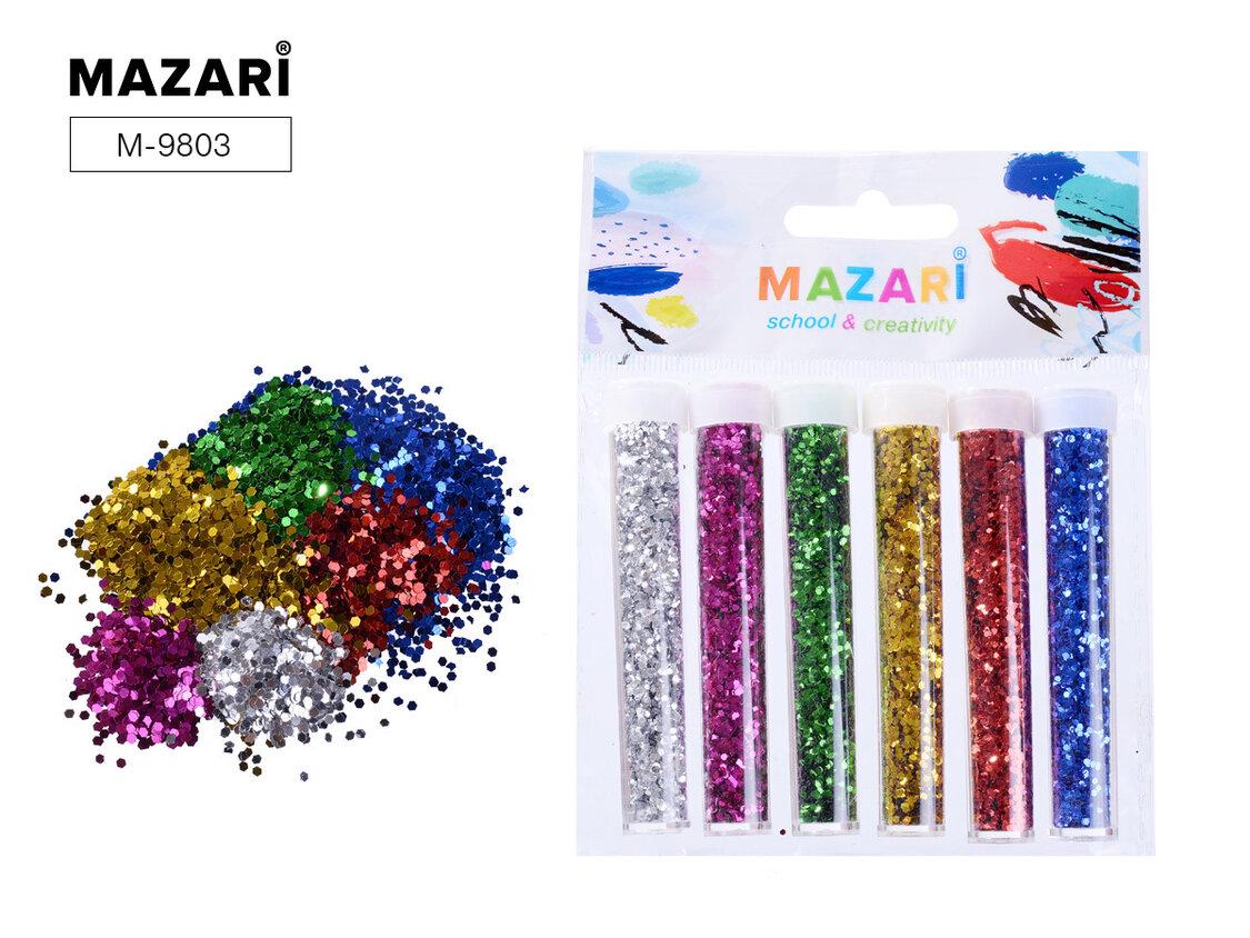 | Материалы для творчества Декоративные Блестки MAZARI набор 6 цветов * 3г в пласт тубе (п/упаковка с европодвесом)  Декорирование с помощью блесток - это простой и эффективный метод по созданию уникального продукта. Для украшения изделий из дерева, стекла, картона, бумаги, воска и других материалов. Используются самостоятельно и в сочетании с красками, лаками, структурными пастами и гелями. |
