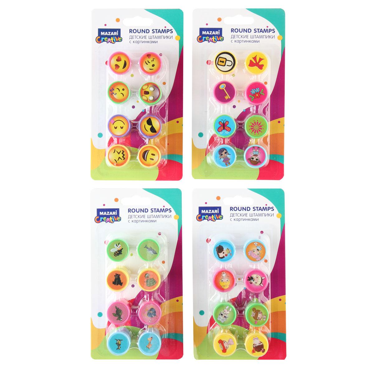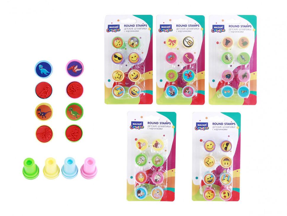| Материалы для творчества Штамп детский MAZARI Набор D=2 2см 8шт (картонная упаковка с европодвесом) Ассорти M-9947  Состав: пластик, бумага, чернила, пропилен. Штампик детский с картинками, размер 2,2х3 см, набор 8 шт, ассорти 4 набора, картинка штампа совпадает с картинкой на крышке, блистерная упаковка Состав: пластик, бумага, чернила, пропилен. |