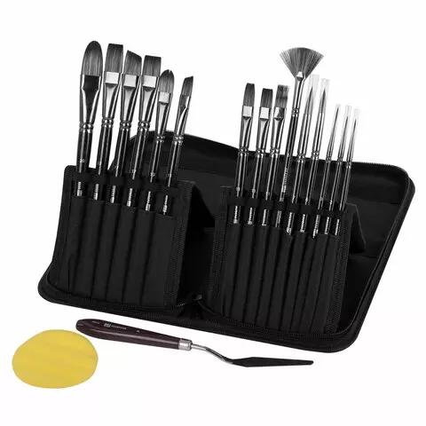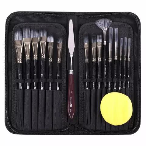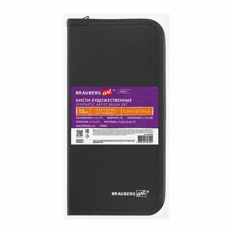 | Кисти набор BRAUBERG 15шт синтетика +мастихин +губка в пенале (п/упаковка)   Кисти BRAUBERG прекрасно подходят для работы жидкими красками. Не теряют жесткость при намокании и одновременно позволяют удерживать максимальное количество краски в пучке. Кисти BRAUBERG ART DEBUT изготовлены с применением синтетики. Отличаются универсальностью в использовании, обусловленной упругостью ворса и прекрасными впитывающими свойствами пучка. Короткая ручка из древесины покрыта лаком, что защищает ее от воздействия красок и влаги. В набор входят 15 кистей различной формы, текстильный пенал, мастихин и художественная губка. Формы кистей: скошенные – № 11, № 17, плоские – № 11, № 17, веерная – № 8, круглые – № 1, № 2,№ 3, № 6, № 7, овальные – № 13, № 20, мастихин – № 4. Номер кисти соответствует реальной ширине пучка в миллиметрах. Упаковка – пенал и ОПП-пакет. Художественные кисти пригодятся как канцтовары школьникам, студентам, участникам мастер-классов, ученикам художественных школ, студий и училищ, живописных мастерских, так как у них представлена широкая гамма размеров и видов.  |