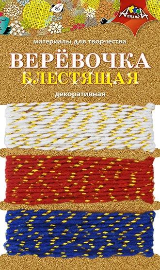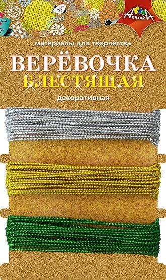 | | Материалы для творчества Веревка для декор (АППЛИКА) 4м (металлизация) (п/упаковка с европодвесом)  Декоративная блестящая Верёвочка 4м. 3 цвета. |