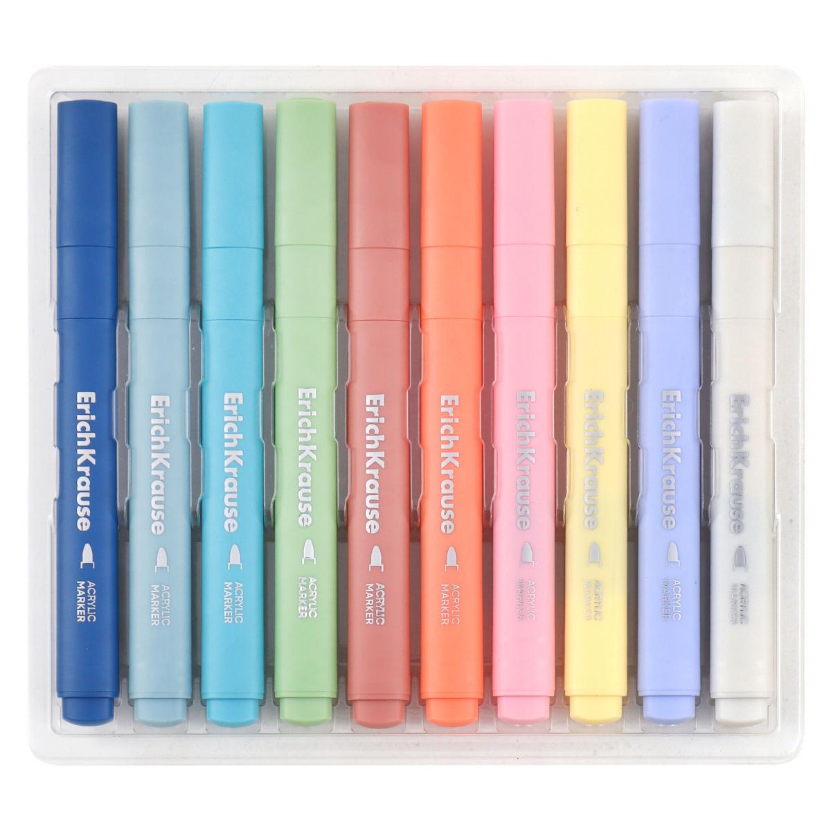 | | Маркеры художественные акриловые набор ErichKrause 10 цветов Manga (п/упаковка с европодвесом)  Акриловые маркеры на водной основе с пулевидным наконечником. Подходят для всех типов поверхностей: стекло, керамика, холст, бумага, пластик, дерево, камень. Идеальны для скетчинга и декорирования. |